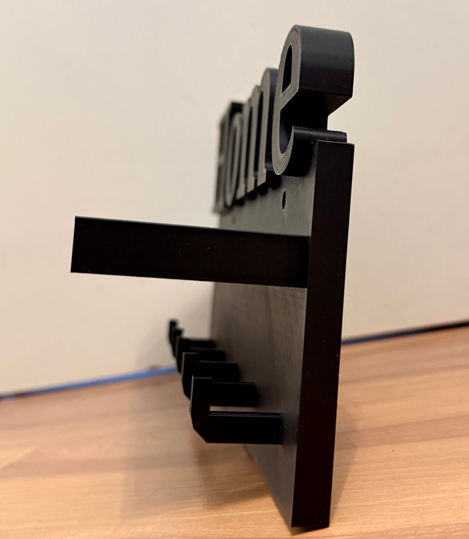 Bringen Sie Ordnung in Ihren Eingangsbereich mit diesem modernen Schlüsselaufhänger für die Wand – präzise gefertigt im 3D-Druckverfahren aus hochwertigem Kunststoff.