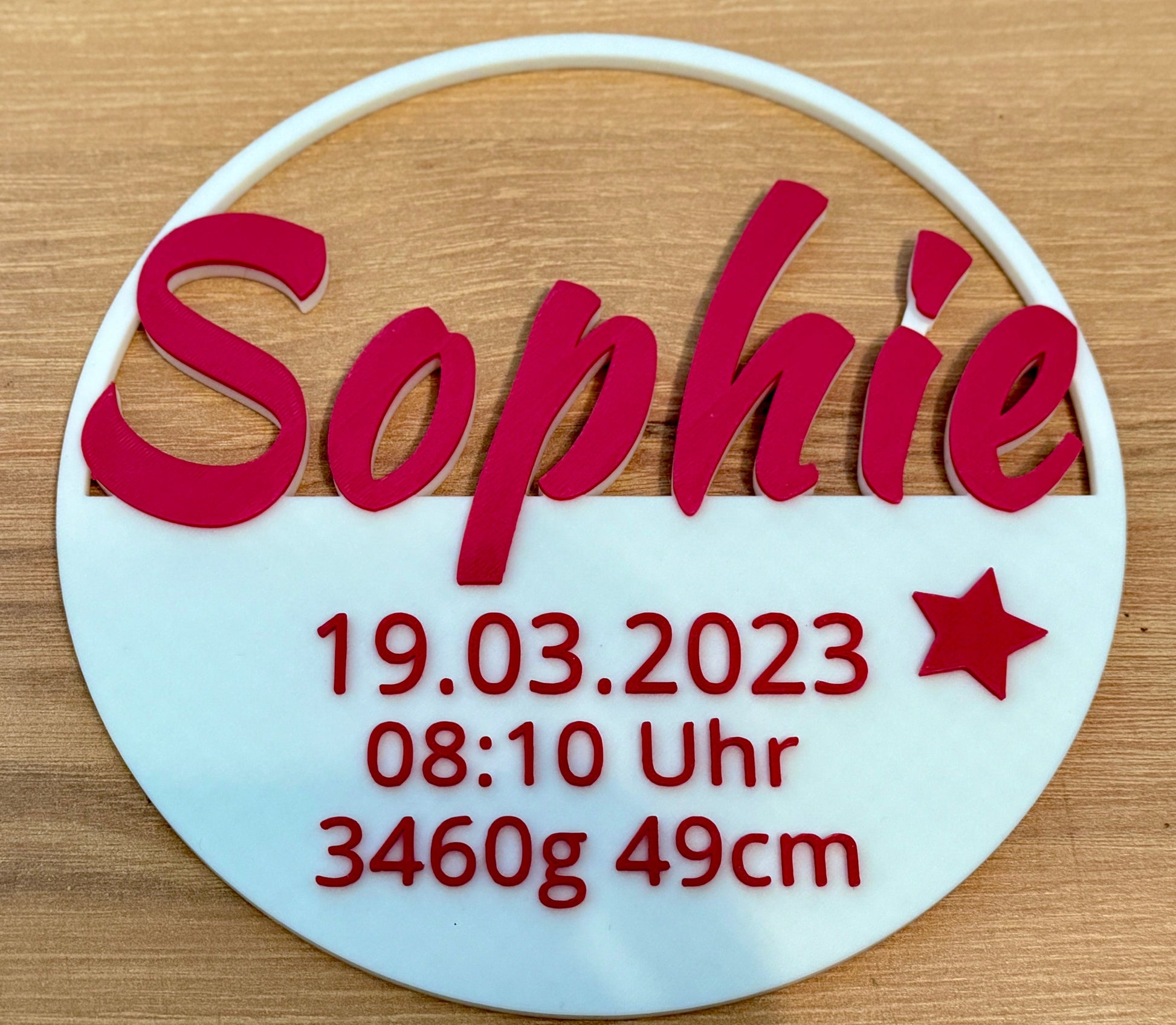 Personalisiertes Türschild mit Geburtsdaten – Rundes 3D-Design