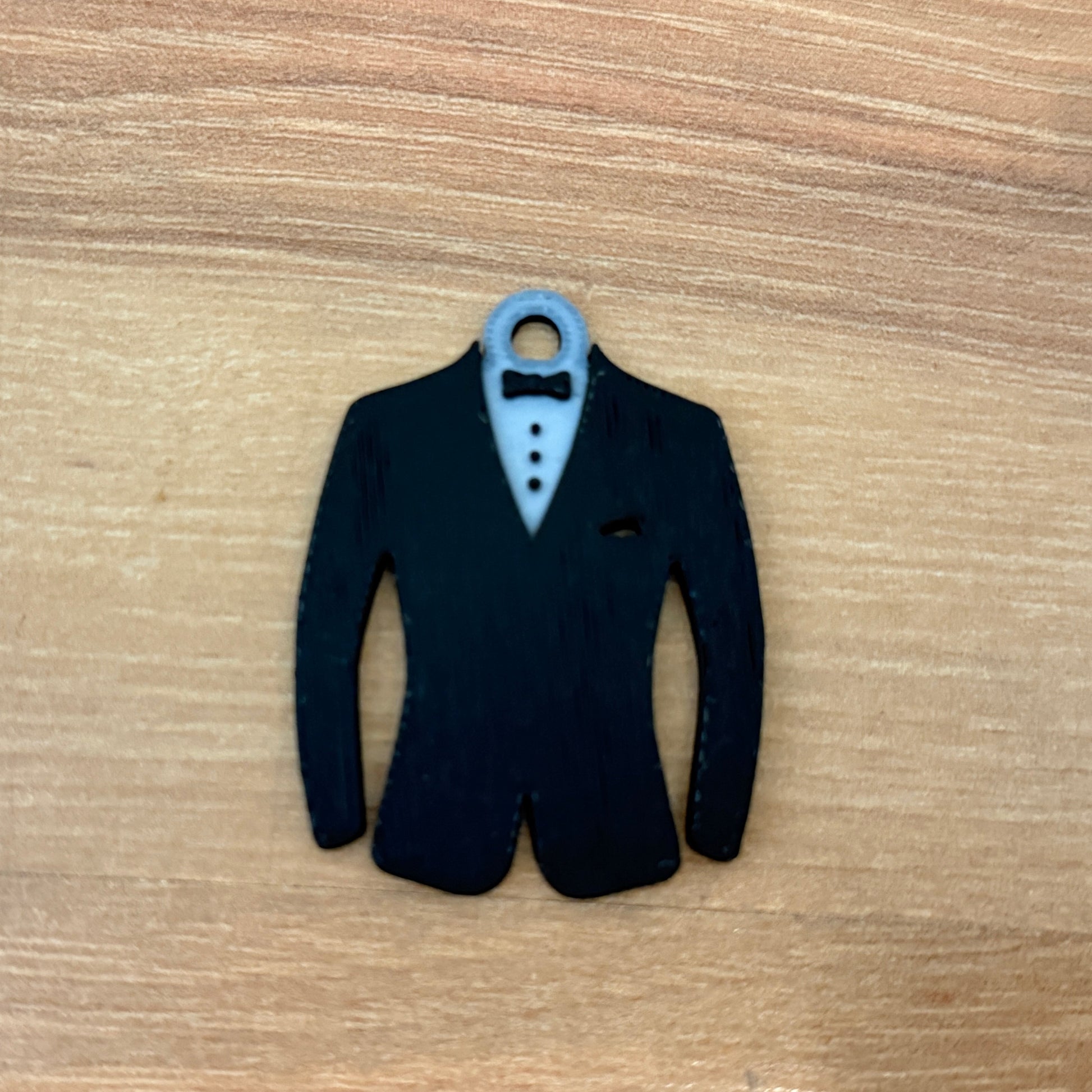 Dieses stilvolle Schlüsselanhänger-Set besteht aus zwei Anhängern in Form eines eleganten Brautkleids und eines klassischen Anzugs – das perfekte Geschenk für Brautpaare oder als kleines Erinnerungsstück für Trauzeugen, Familie oder Freunde.