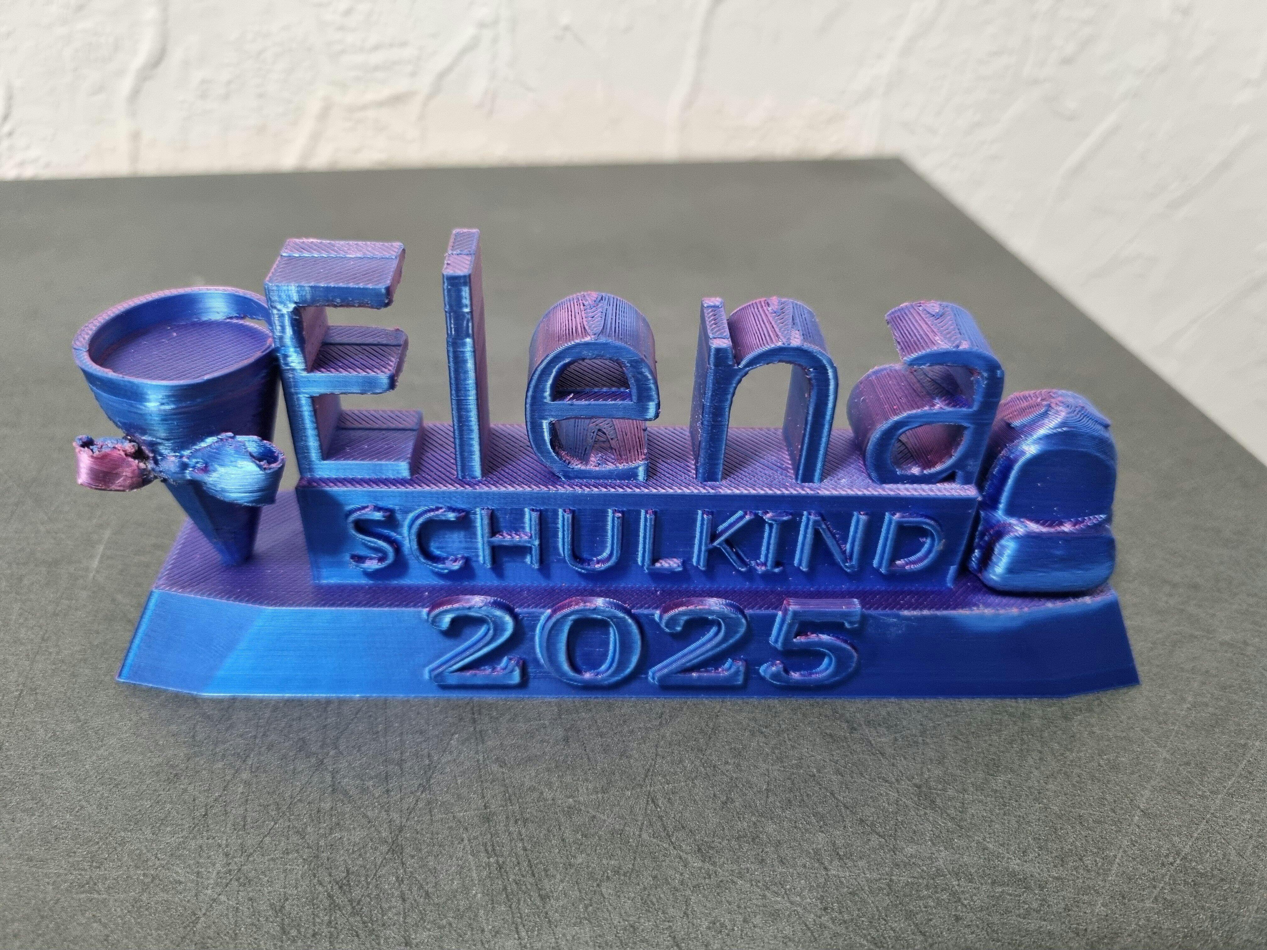 Ein liebevoll gestalteter Tischaufsteller für Schulkinder – perfekt als Geschenk zur Einschulung oder als bunte Deko fürs Kinderzimmer! Der Name des Kindes wird in kräftigen Regenbogenfarben als 3D-Schriftzug dargestellt, begleitet vom Schriftzug „Schulkind 2025/26“. Kleine Symbole wie ein Stift, Ranzen oder Stern runden das verspielte Design ab.